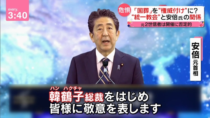 安倍晋三「統一教会の皆様に敬意を表します!」