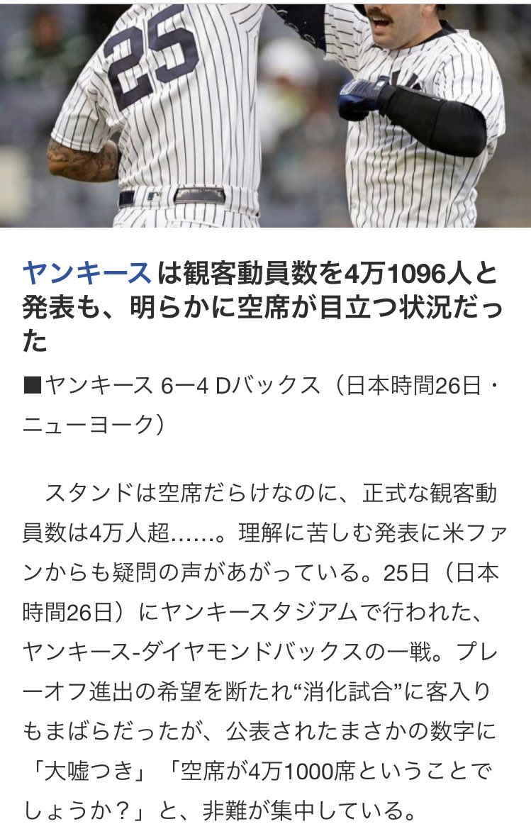 ヤンキースタジアムは観客席がらがらも発表は4万1096人