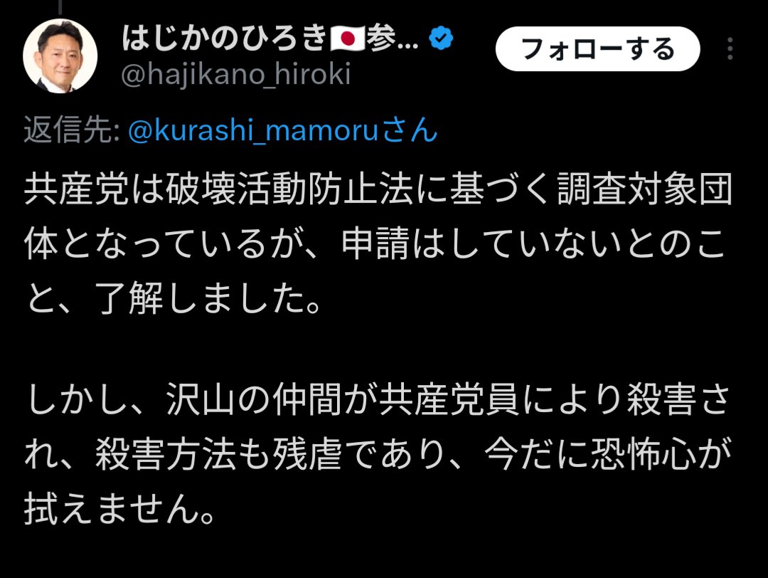 共産党神奈川県委員会は16日、参院選神奈川選挙区に出馬した参政党の新人候補がX(旧ツイッター)に「たくさんの仲間が共産党員により殺害」と虚偽の投稿をしたとし、名誉毀損などの容疑で県警に告訴状を提出したと明らかにした。