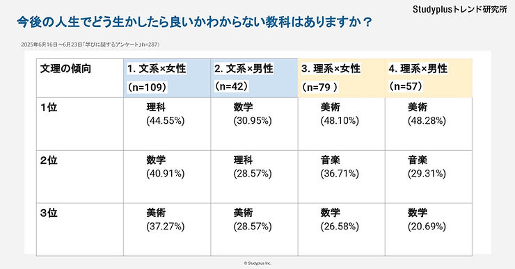 ■今後の人生でどう活かしたら良いかわからない教科は「美術」、さらに理系教科が上位に