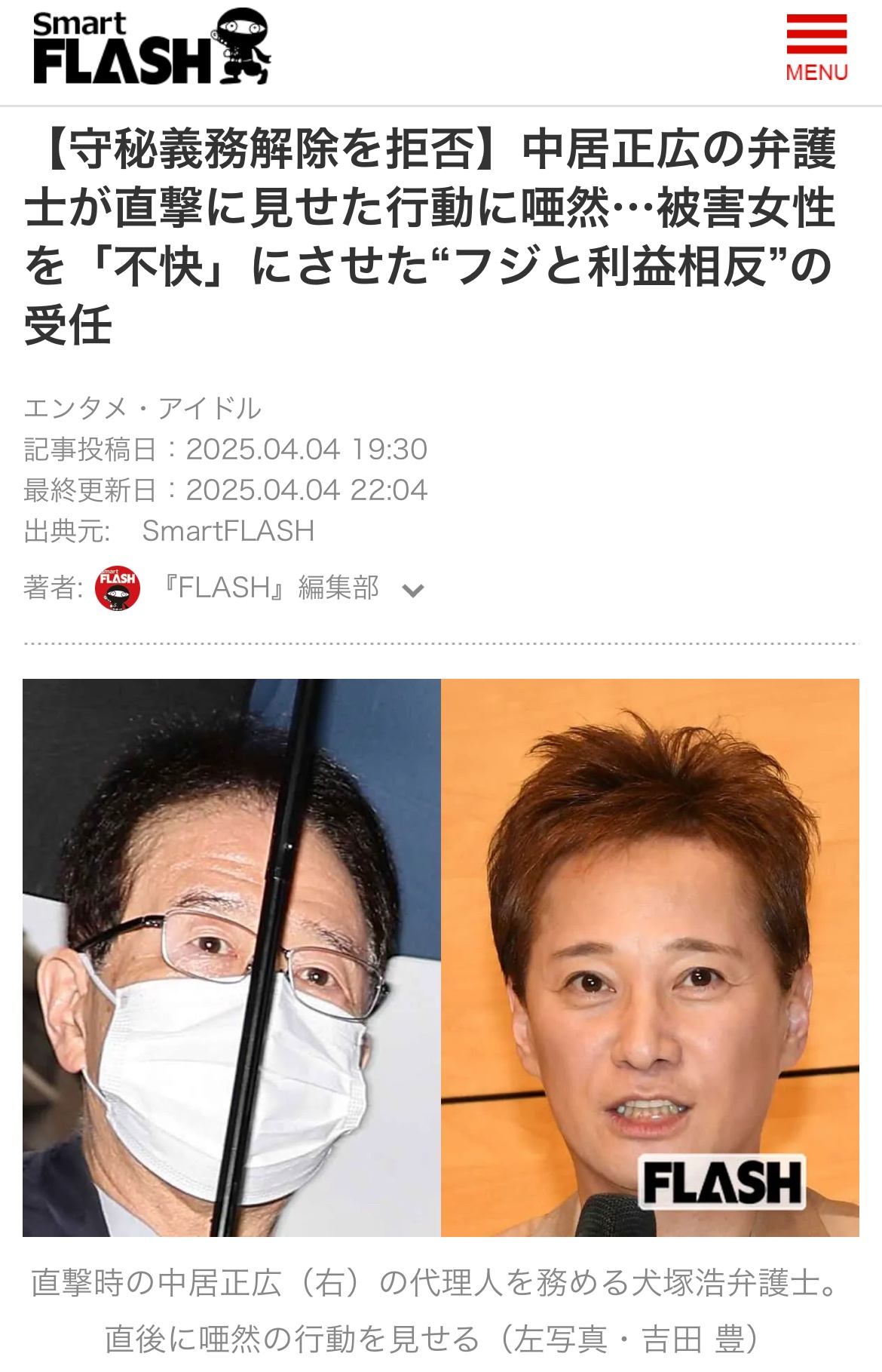 5chまとめ 中居正広文春性暴力 【文春】衝撃スクープ!中居正広「性暴力」の全貌がついに分かった!《被害内容が記された通知書を入手》★7 [Ailuropoda melanoleuca★] 2025年8月6日 (出典 【文春】衝撃スクープ!中居正広「性暴力」の全貌がついに分かった!《被害内容が記された通知書を入手》★7 )1 Ailuropoda melanoleuca ★ :2025/08/06(水) 08:29:41.67 ID:HIF7QDhT9昨年末から「週刊文春」が報じてきた元SMAP・中居正広(52)の性暴力問題... うさ-管理人