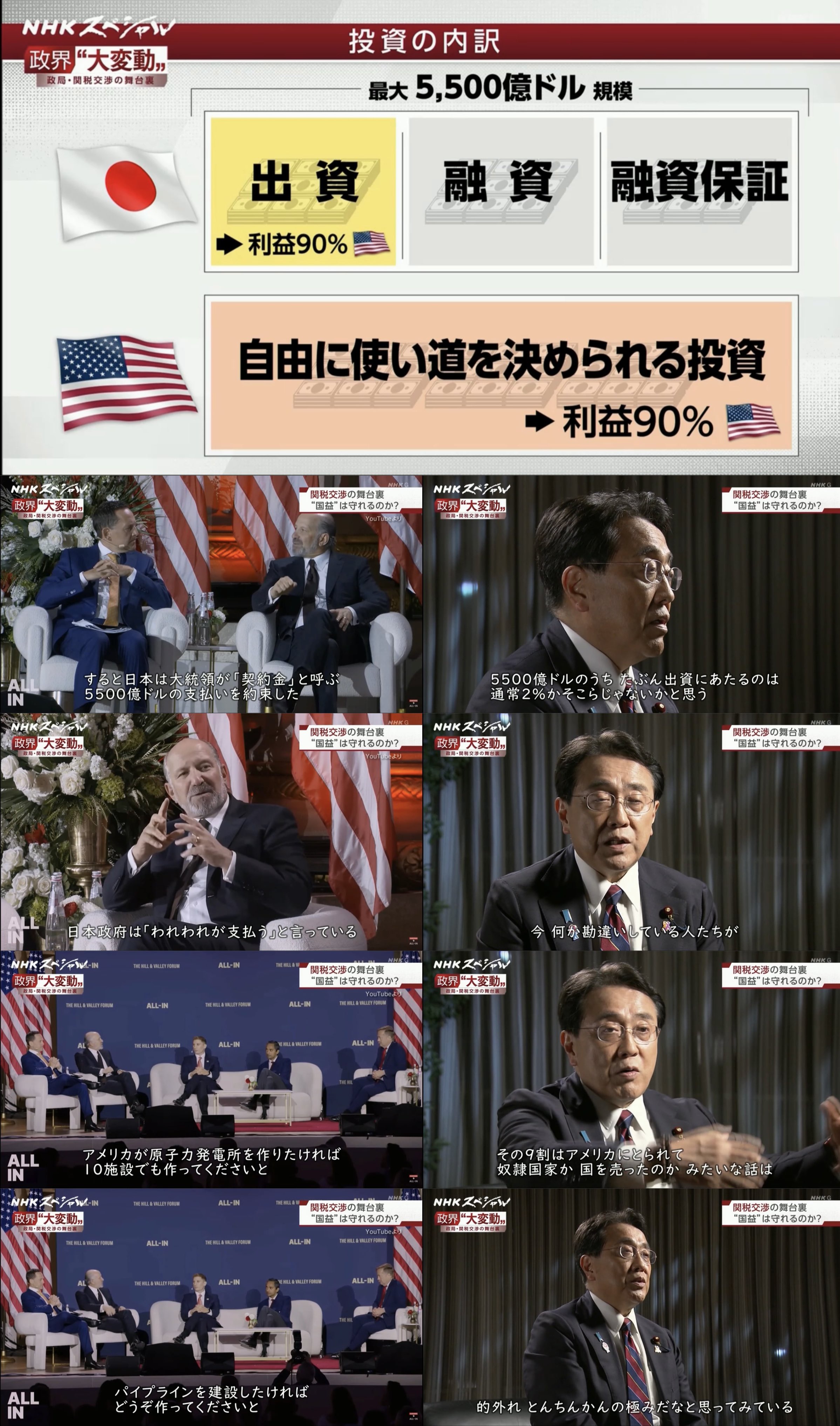 5chまとめ トランプ関税 トランプ米大統領 「日本からアメリカへの80兆円は我々の資金だ」 石破政権の日米関税交渉合意で説明 [お断り★] 2025年8月6日 (出典 トランプ米大統領 「日本からアメリカへの80兆円は我々の資金だ」 石破政権の日米関税交渉合意で説明 )1 お断り ★ :2025/08/06(水) 08:18:48.30 ID:3vV4iz499トランプ大統領 日本からアメリカへの5500億ドルの投資は「契約ボーナス」「我々の資金」「好きなように投資できる」日... うさ-管理人